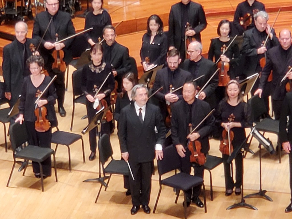 Friday’s performance didn’t quite live up to that earlier one. Maestro Muti is second to none among today’s conductors when it comes to various aspects of his craft, such as balancing the orchestra’s sections and drawing the ideal sound from each section for whatever music they are playing. That was very evident in this performance. But such attention to detail sometimes comes at the expense of overall visceral impact, and that struck me as being the case Friday night.