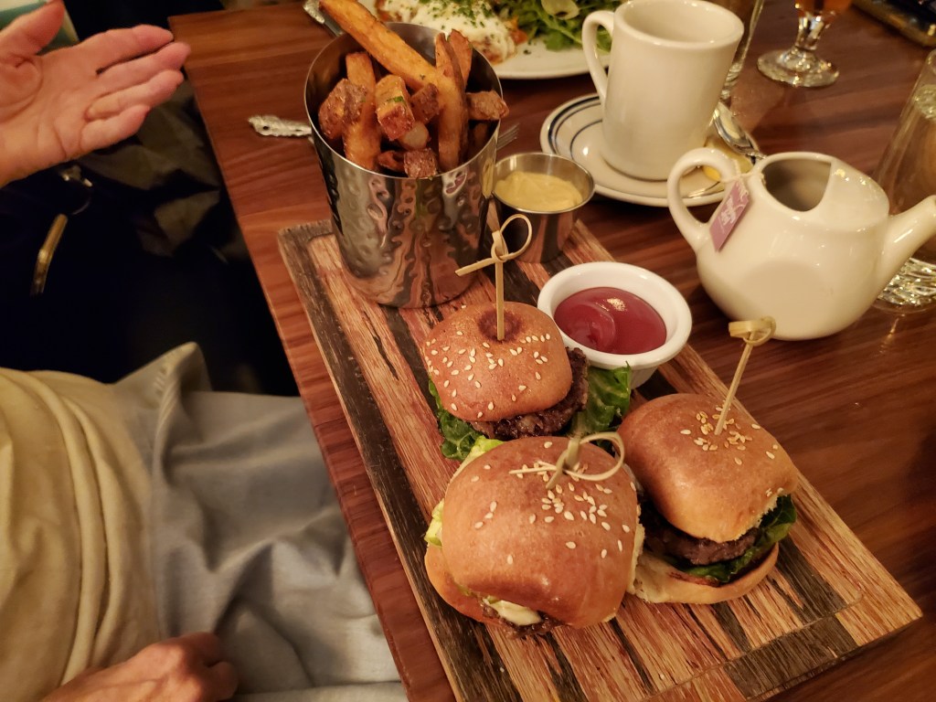 Our cousin Michele opted for an order of Nova Crackers – the restaurant’s name for sliders – and fries. There were three two-ounce sliders that looked good enough for me to consider ordering them on a return visit.