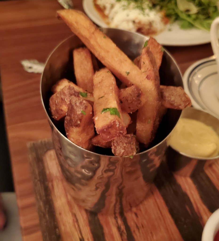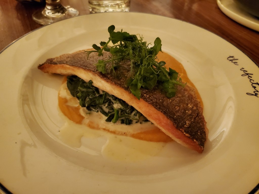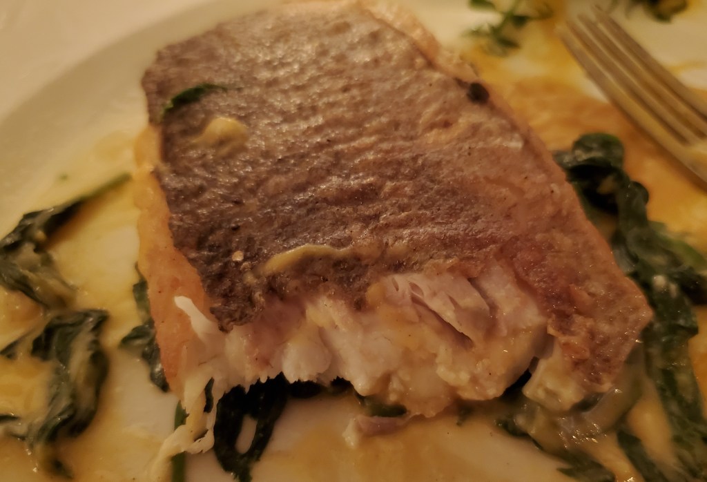 In addition to long feeling that I should eat more fish, the vegetables that accompanied it influenced my order. Creamed spinach and sweet potato puree are both near the top of my good veggies list. And they didn’t disappoint.