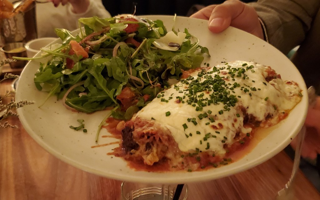 Abdel ordered chicken parmesan and didn’t seem fully satisfied, commenting that the chicken was a little on the dry side.