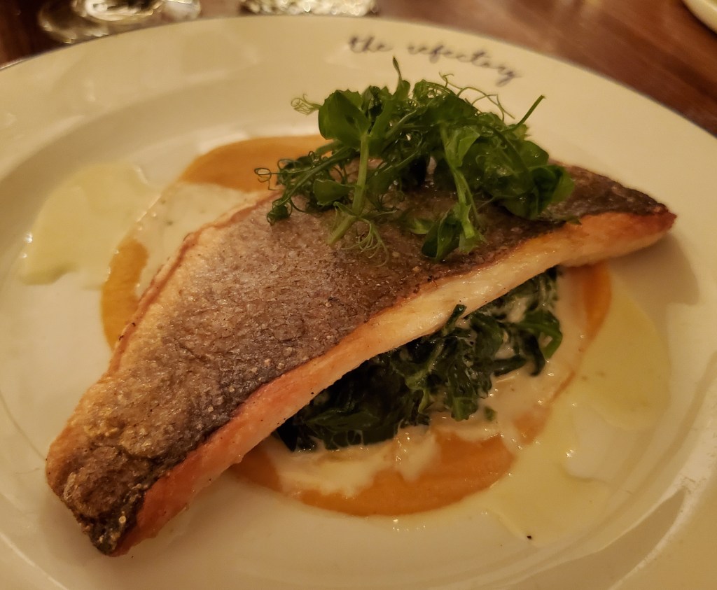 As previously alluded to, my wife went sans an entree on this occasion. For a second course, she instead opted to go with The Refectory’s take on Ramen, which included ginger, bok choy, a soft poached egg and Calabrian chili in addition to the broth, noodles and chicken. Not only did she enjoy it very much, but the portion was large enough for her to take home a second meal.