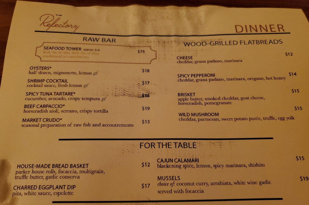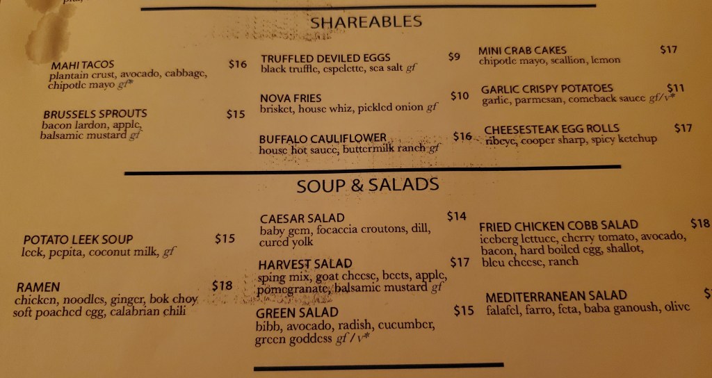 It was just within the past couple months that I discovered Villanova University, which is reasonably close to where I live, now has an on-campus restaurant with a menu and decor that looked appealing. The Refectory actually opened in 2019, and I’ve driven past it several times since then. But its signage isn’t easily seen from the road, so it remained unknown to me until I came across it online while searching for new places to eat.