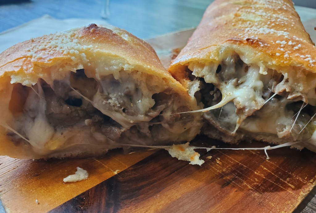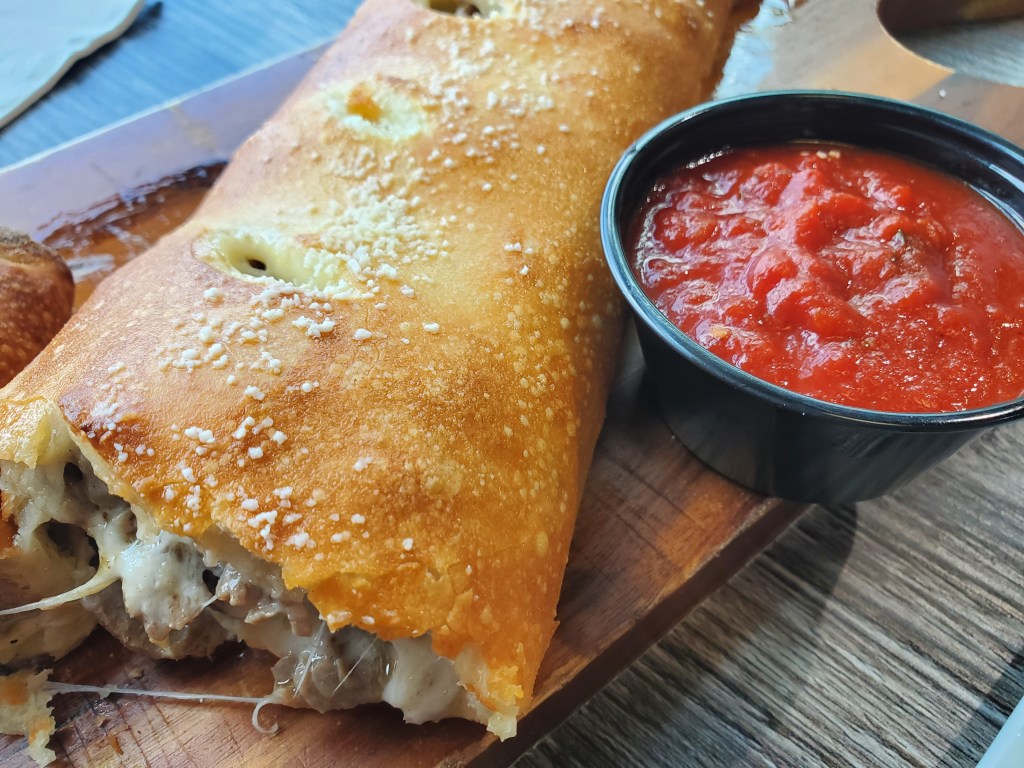 The stromboli included both Cooper Sharp and Mozzarella. There was a lot more cheese than is normally the case with a regular cheesesteak, but that’s appropriate for a stromboli and didn’t seem out of proportion alongside the meat and that great crust.