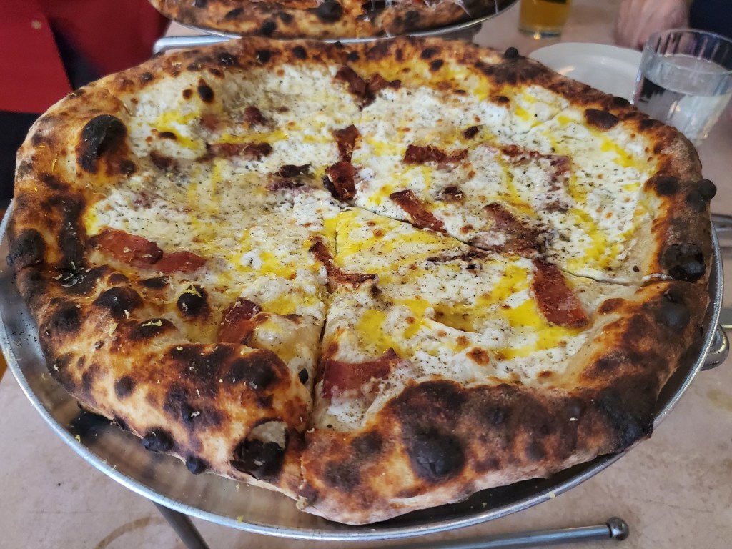 Both were right in my wheelhouse and I didn’t hesitate before jumping in to sample slices. They were – as expected – fantastic. The bacon on the carbonara pie packed a strong smokey flavor that I loved, while the onions on the other pizza were perfectly caramelized.