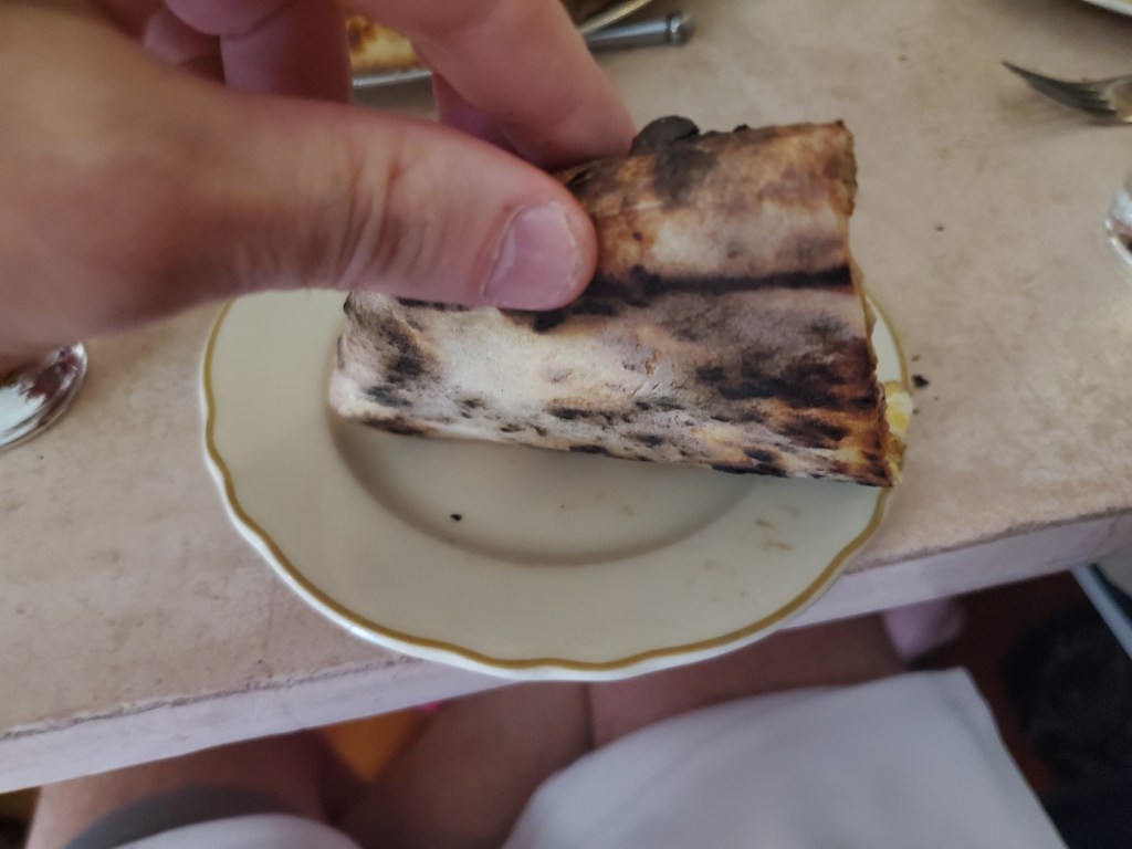 We didn’t have long to wait until the two white pizzas with egg arrived.