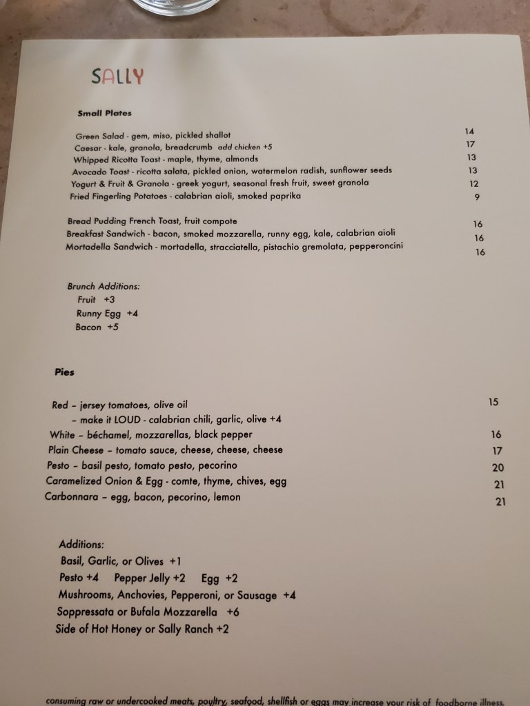 Our latest stop was Sally in the Fitler Square section of Philadelphia’s Center City. They have regularly shown up on various best-of lists in recent years, so my expectations were fairly high.