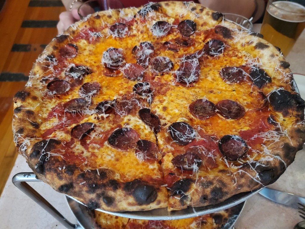 The style was more Neapolitan than New York. While I am sometimes turned off by the soft puffiness of the crust along the outer edges of Neapolitan pies, that wasn’t an issue with any of the ones we ate at Sally’s. The crust was light and airy, but also crispy and had a nice flavor from the wood fire in the oven.