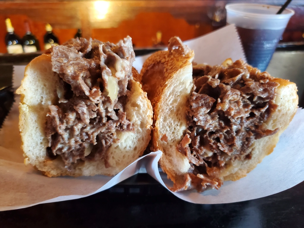 The obvious thing that stood out about these steaks from a visual standpoint was the big puddle of cheese on top of each. I’m pretty sure the cheesesteak I had at Bleigh Street in 2023 featured sliced Cooper Sharp that was beautifully melted in with the meat. But they now appear to be using a thin Cooper sauce, something that a few other places offer, but which I always pass on if there is a choice.