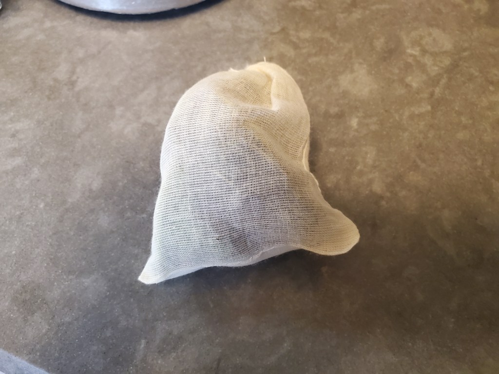 As I don’t like to chop herbs, I usually put them into a cheesecloth herb pouch, which are inexpensive and available from Amazon.