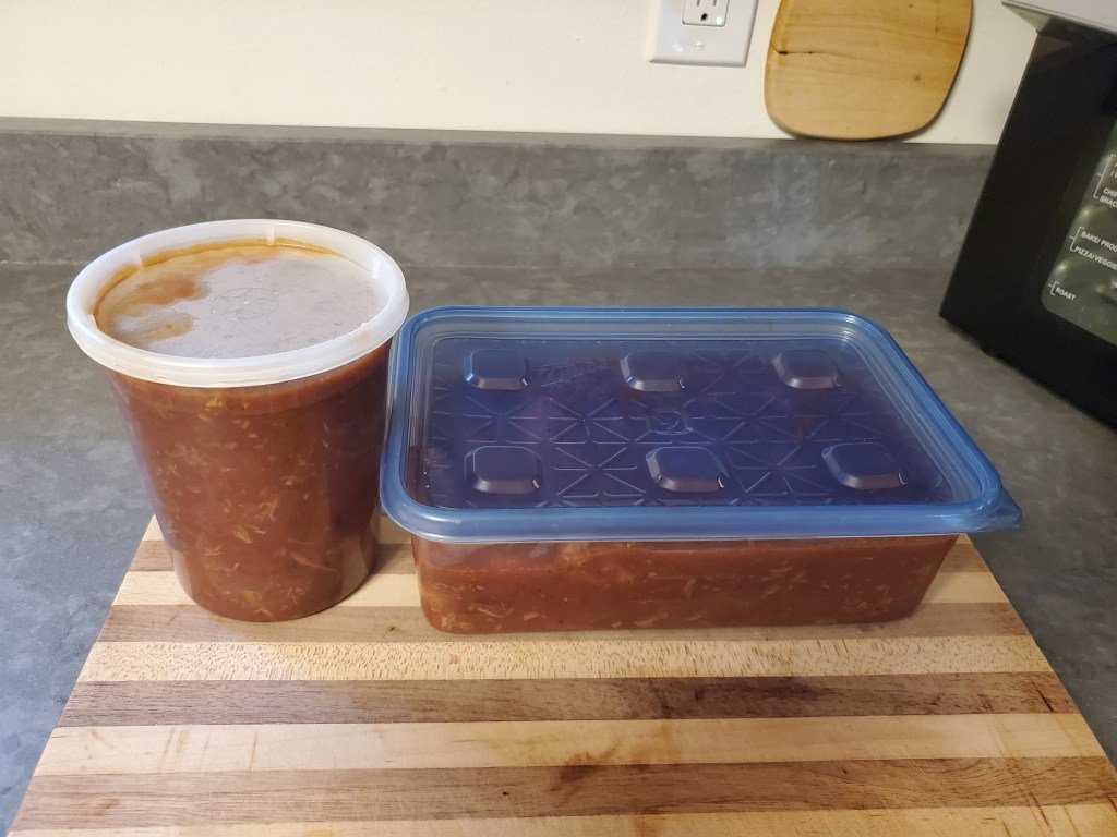 So I will usually spoon the gravy into a plastic container, seal it and stick it in the fridge for the next day. If I’ve made more gravy than I want to eat over the course of the next week, I’ll freeze some for later use. In the case of the batch I made last week, I froze a quart of gravy and put about twice that much in the refrigerator.