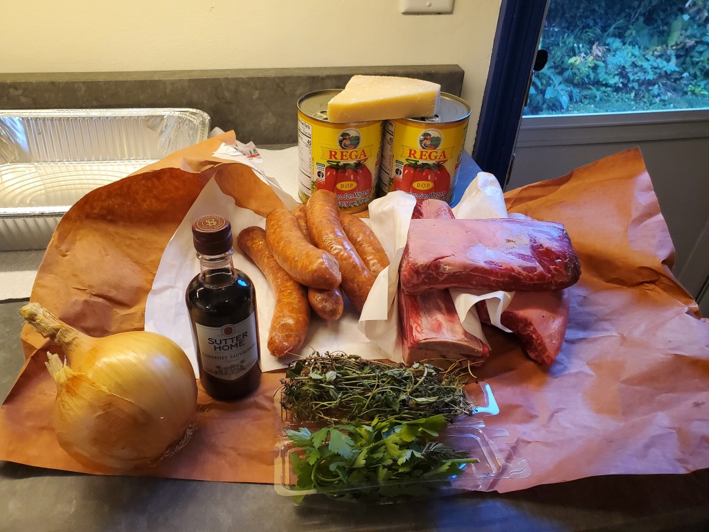 I started by visiting my local butcher to pick up a few of the meatiest beef short ribs they had and some hot Italian sausage. We already had everything else I needed on hand