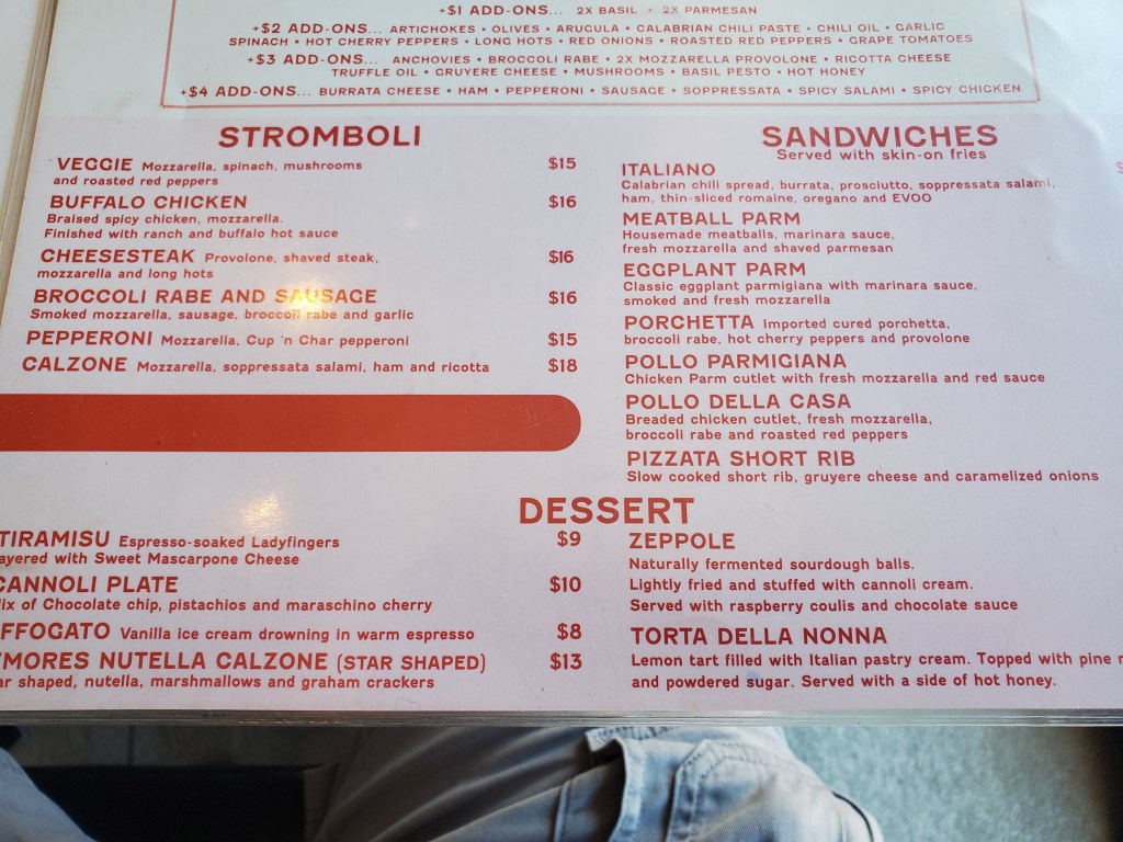 As always, I had gone over the menu in advance and had a game plan. With the proviso that there must be a meat topping on at least one pie for Francisco, the crew allowed me to do the ordering.