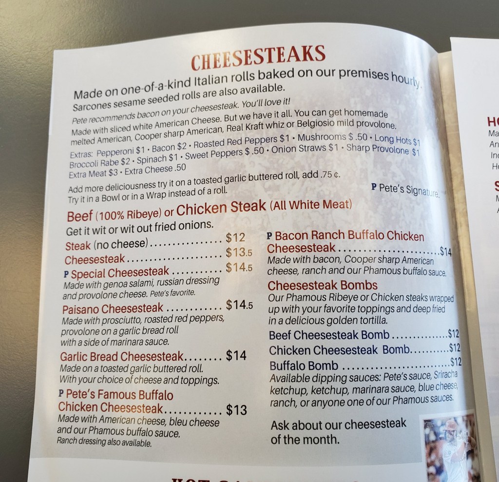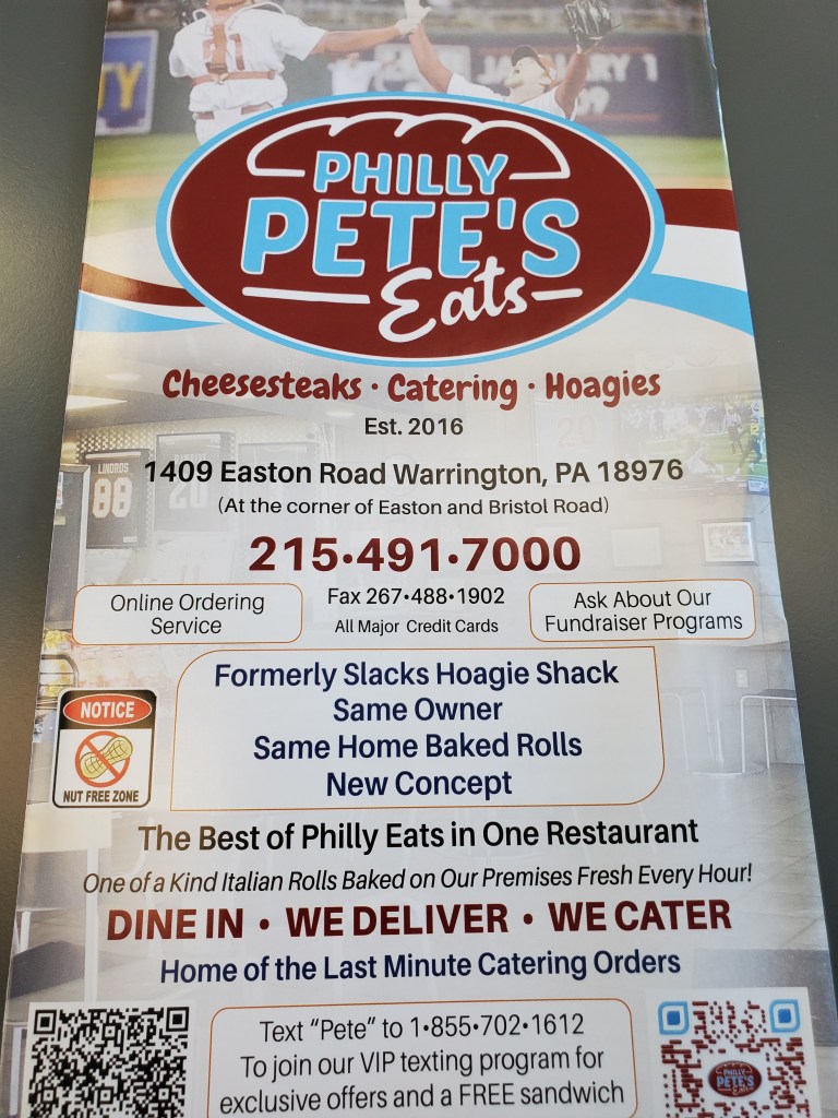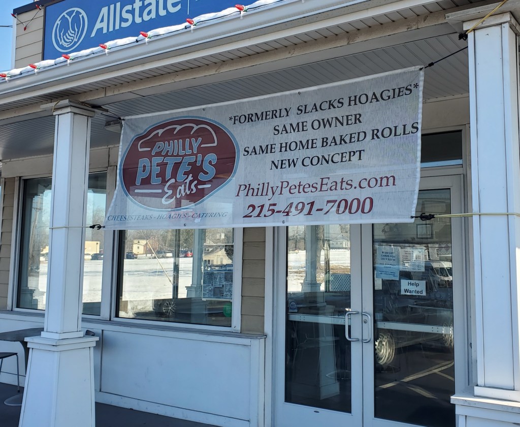In my last cheesesteak post I referred to the list I keep of restaurants I’d like to get to at some point. Another sandwich shop that had been on it for a fairly long time is Philly Pete’s Eats in Warrington, Pennsylvania.
