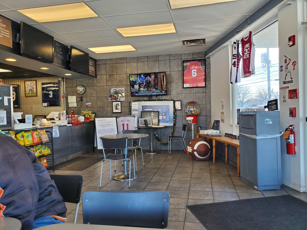 The interior was filled with Philly sports photos, jerseys and other memorabilia.