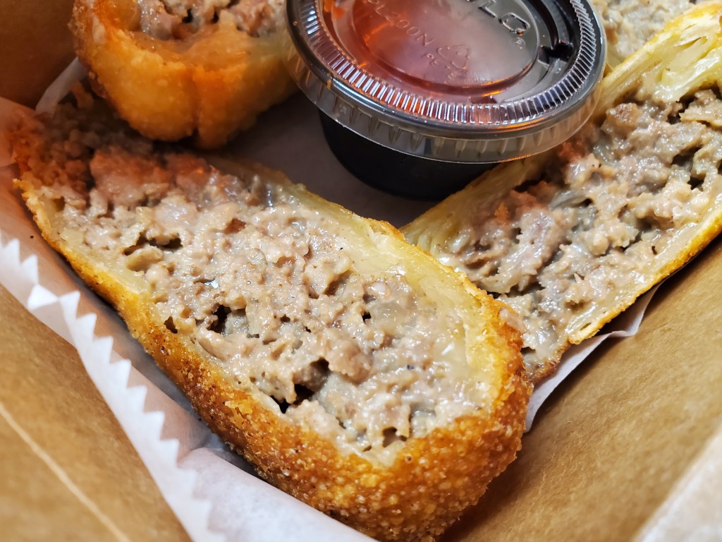 They featured the kind of old-school egg roll crust that I look for at Chinese restaurants and packed an abundance of finely chopped ribeye with Cooper Sharp cheese mixed in beautifully throughout. A small container of spicy siracha ketchup was included for dipping.