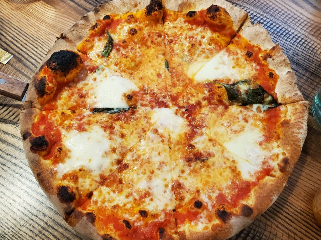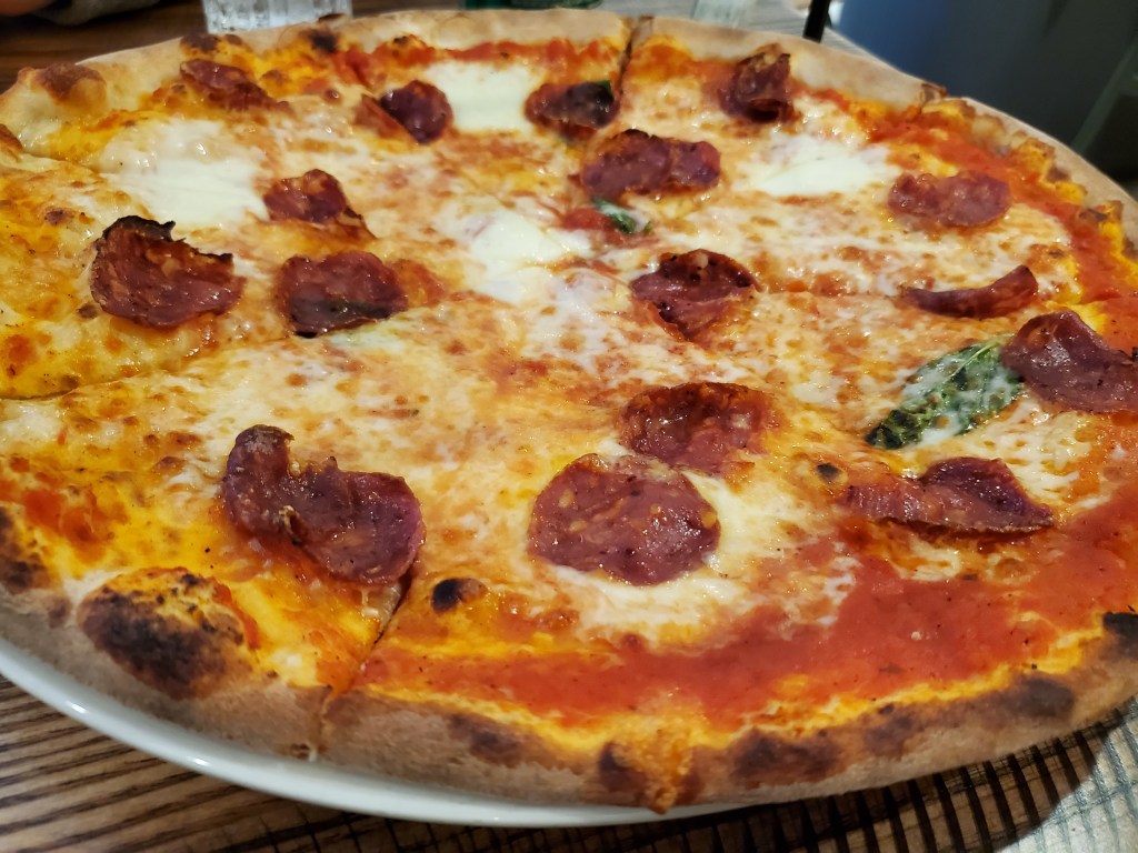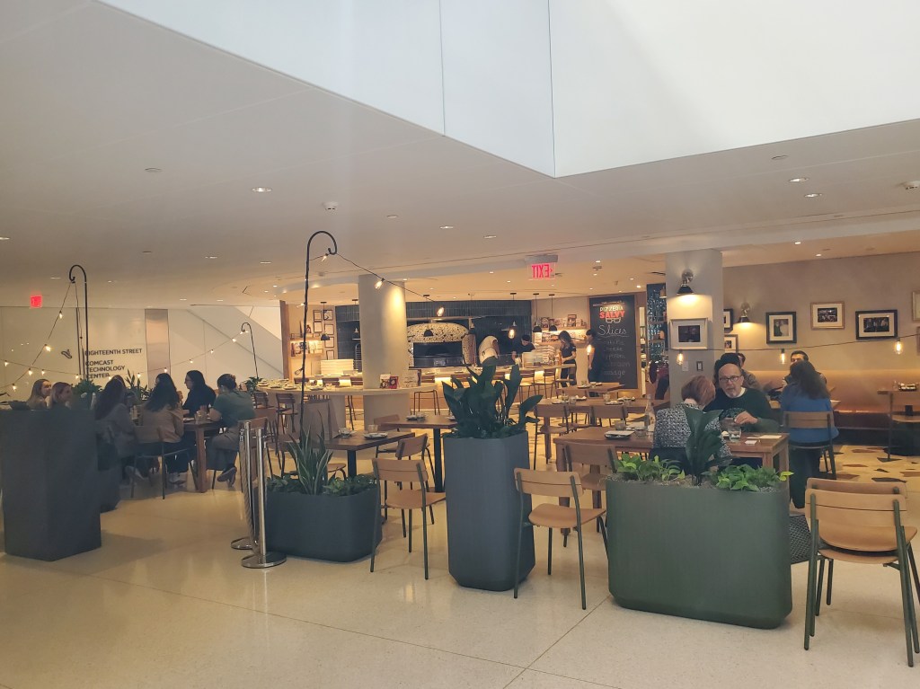 As a reminder, Pizzeria Salvy is situated in Pennsylvania’s tallest building – the Comcast Technology Center, which is in Philly’s Center City. Its open layout always reminds me of an airport restaurant.
