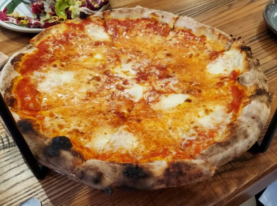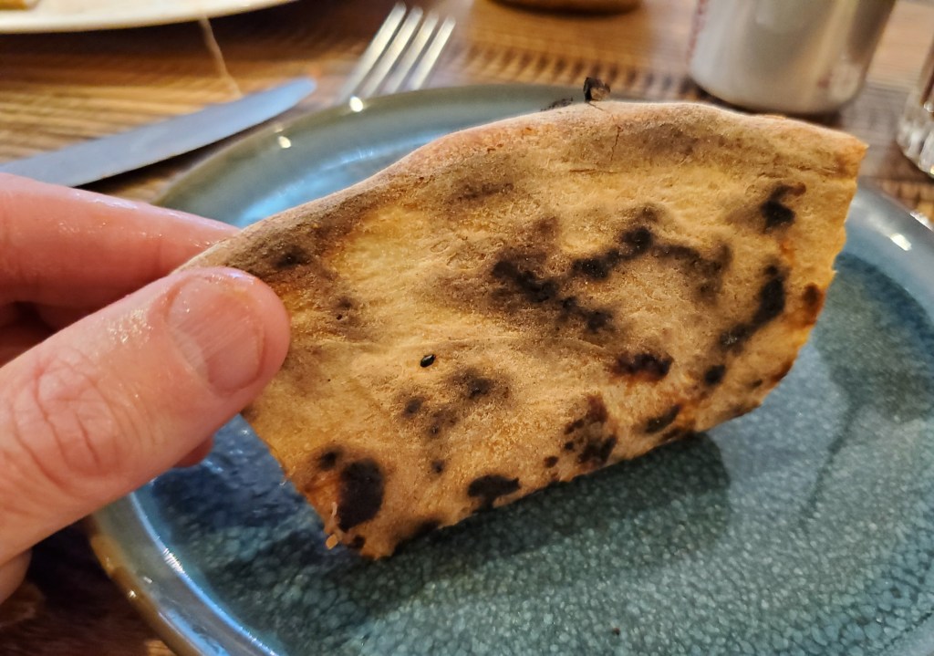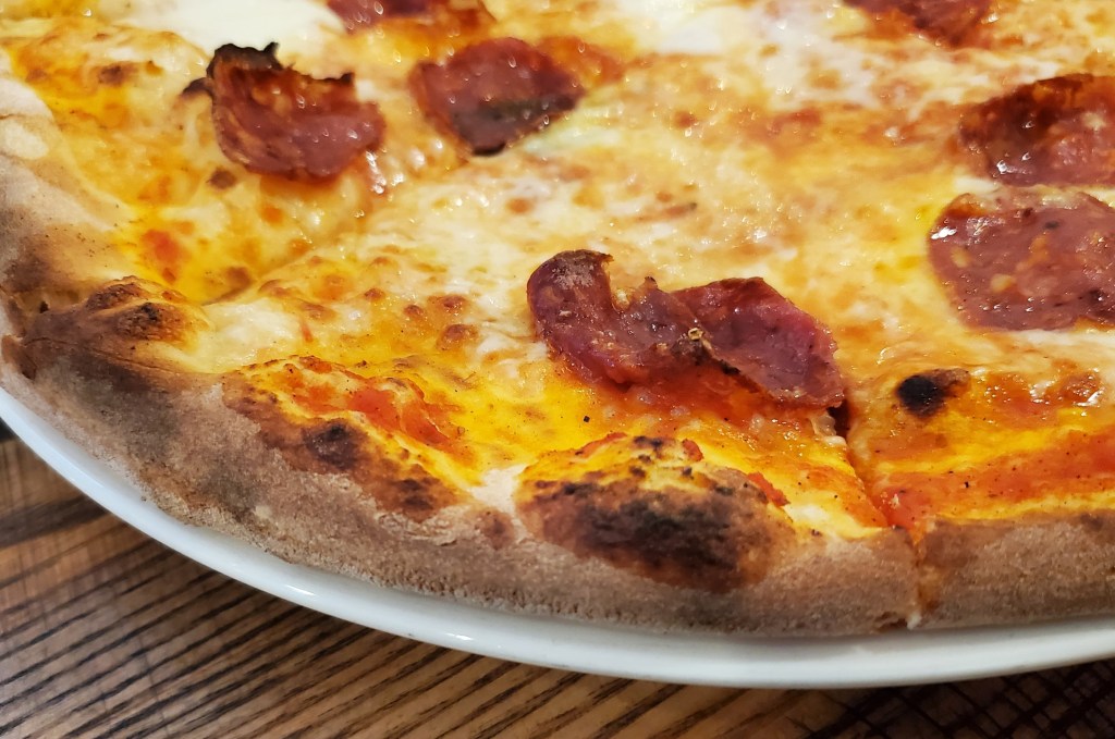 At the first opportunity, I asked our server whether it is the same pizza as their former New York cheese pie and was disappointed when he informed us that it’s instead a cross between the New York pie and their Neapolitan-style pizza.
