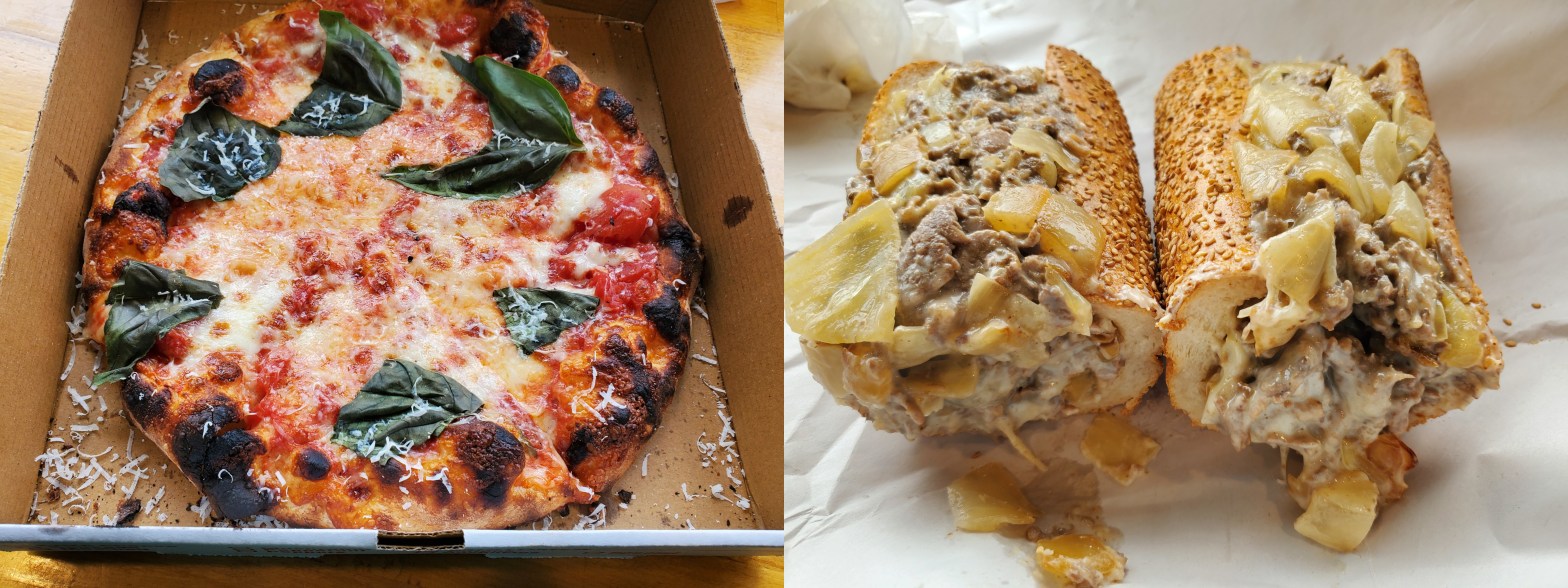 Cheesesteak and Pizza Outing Cut in Half