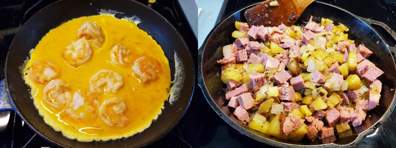 Shrimp & Scrambled Eggs with Corned Beef Hash