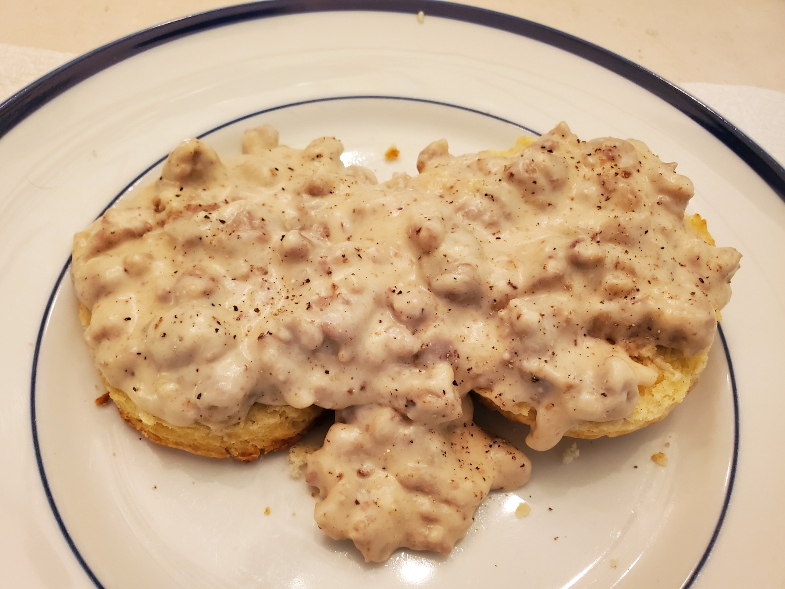 Although biscuits with sausage gravy has been a popular breakfast staple in large swaths of the United States for virtually as long as the country has existed, it wasn’t particularly big where I grew up. In fact, I must have been at least well into my thirties before trying it for the first time andContinue reading “My First Go at Biscuits with Sausage Gravy”